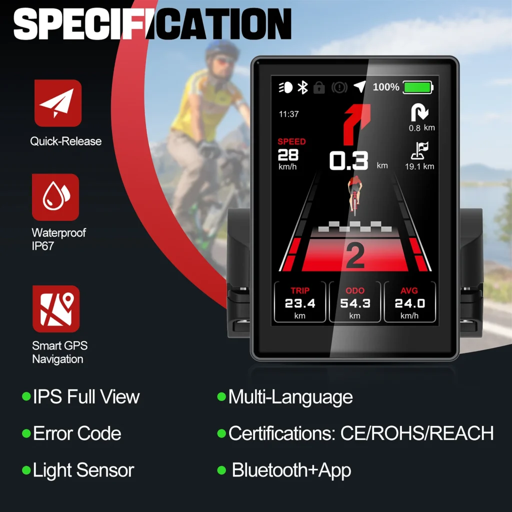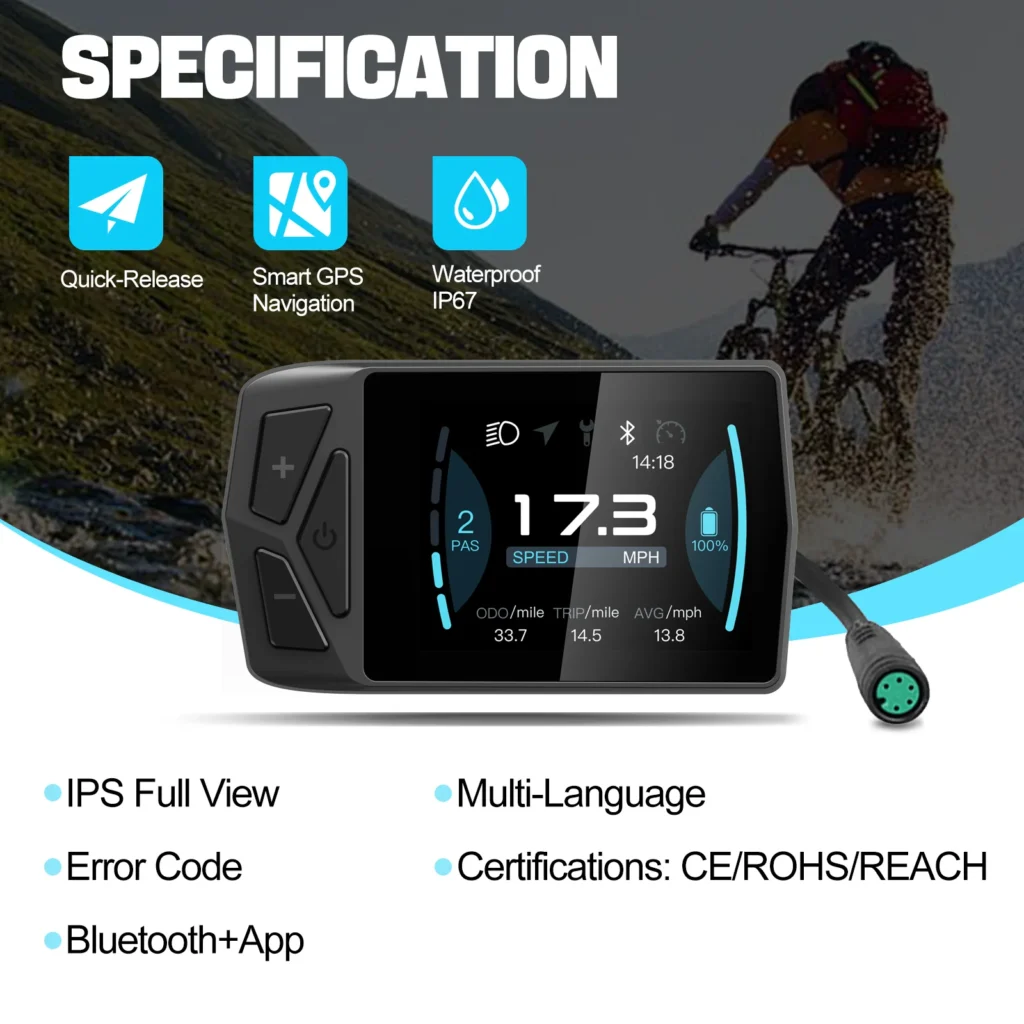 Expandable Ebike Display System: Compatible with B02N-U/B04N display, syncing via BIKEGO+ App for real-time monitoring of speed, distance, and battery levels on iOS/Android devices.